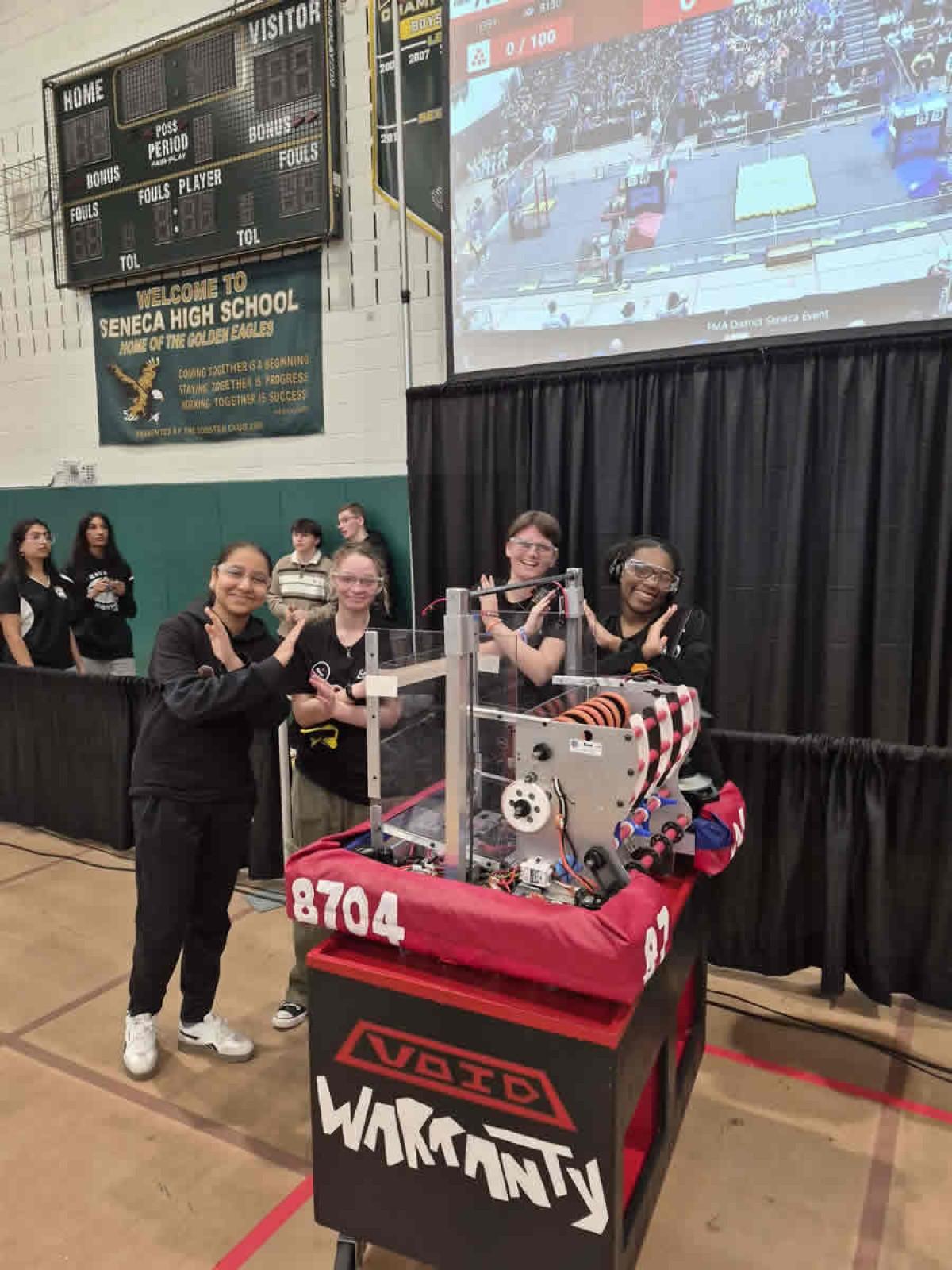 Incredible news regarding our school’s FIRST Robotics team, 8704 Void Warranty. This past weekend, our students competed at the district level event held at Seneca High School, and I am proud to announce that we took home the blue banner as Event Winners!