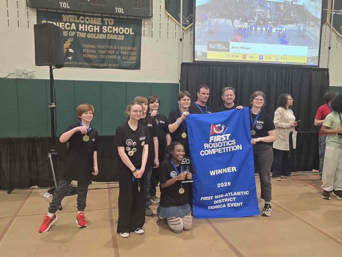 Incredible news regarding our school’s FIRST Robotics team, 8704 Void Warranty. This past weekend, our students competed at the district level event held at Seneca High School, and I am proud to announce that we took home the blue banner as Event Winners!